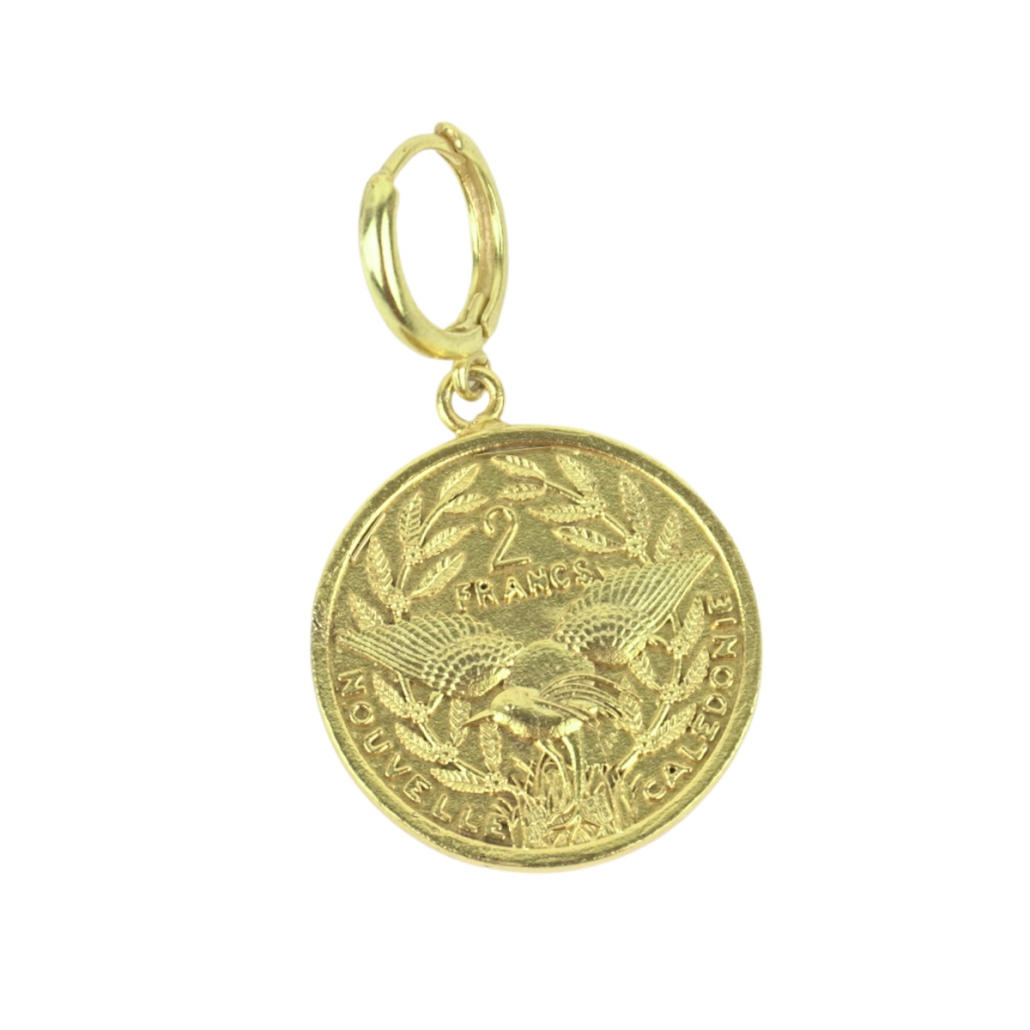 Excited to add coins to our collection of removable charms! Wendy loves birds. Wendy loves coins. When researching which coins incorporate bird imagery – this French New Caledonia Franc was perfection! An exact replica of this coin (front & back) reproduced in 22kt gold plate and turned into one of our removable pendants! These can be added and subtracted to any chain by simply opening the clasp which is reminiscent of a hoop earring. Complete a necklace you already have in your collection or add to any of our chains including our Favourite Pearl Necklace!