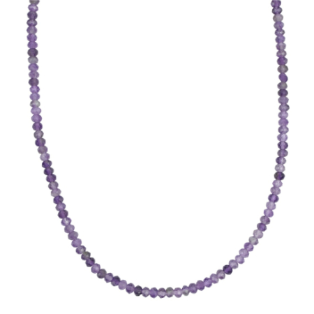 16″ necklace of Amethyst rounds with 1″+ GF extender chain with lobster clasp. Add any or our Favourite Things removable charms or add a pop of color to your neck stack! Simply the best!