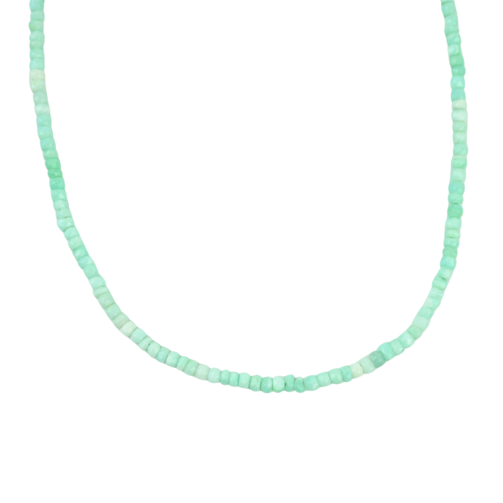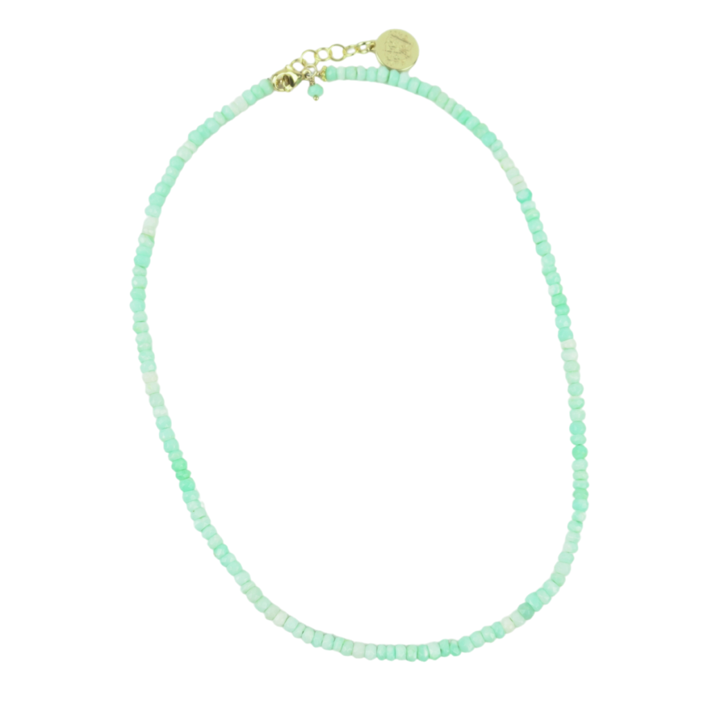 16″ necklace of Peruvian Opal rondelles with 1″+ GF extender chain with lobster clasp. Add any or our Favourite Things removable charms or add a pop of color to your neck stack! Simply the best!