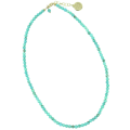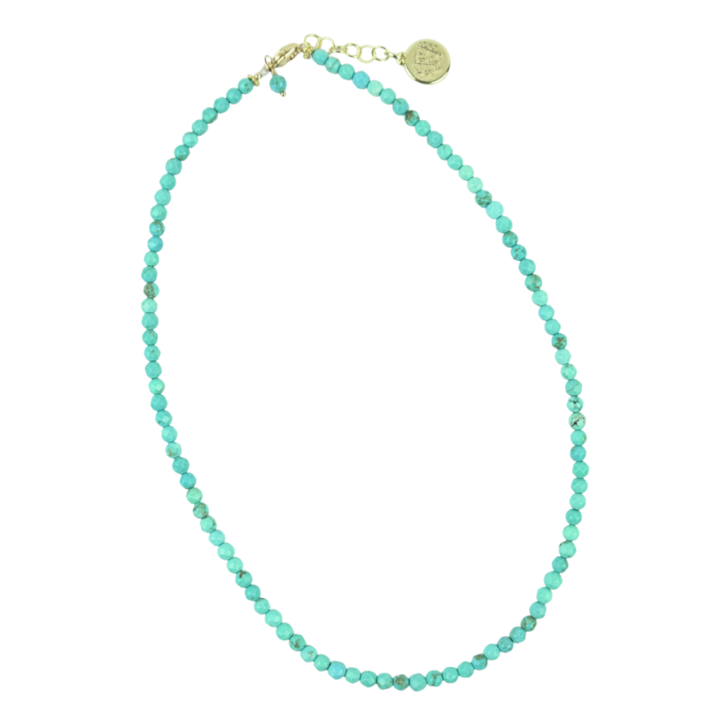 16″ necklace of Turquoise rounds with 1″+ GF extender chain with lobster clasp. Add any or our Favourite Things removable charms or add a pop of color to your neck stack! Simply the best!