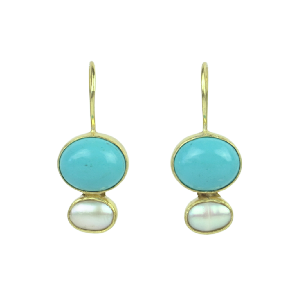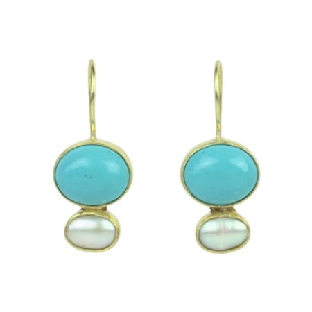 Turquoise and Pearl with 22kt Gold Plating. WP33TU