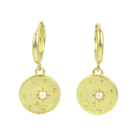 Love this sweet, lightweight celestial charm hoop earring! Love how it’s highlighted with a tiny white pearl starburst! An easy everyday wear!!!