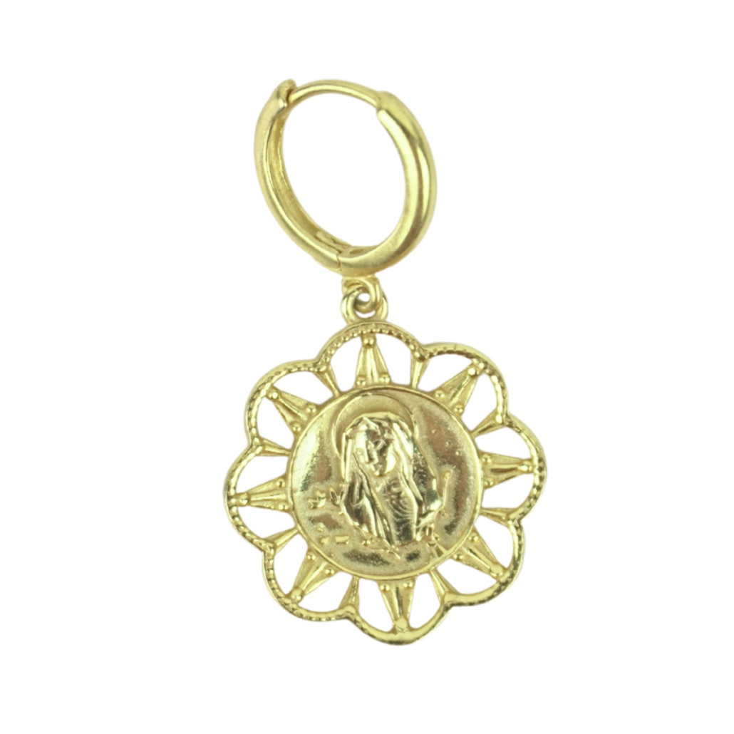 There’s always a story: I could NOT find the perfect image of the Virgin Mary for my pendants… I searched high and low and the faces were not right; features not the best. I walked into my religious book club one morning to my friend sharing with me a pencil sketch her daughter had drawn of Mary… and let me tell you she was PERFECT! I received permission from the artist, Olivia, to use her image in my designs. Thus Olivia’s Mary was born! This design is modeled after my mom’s Mary pendant that she wears every day with the filigree halo. There is also a slightly bigger version with a ribbon edge. LOVE her!!!