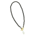 The Traber necklace is the entire package – wrapped up with a bow (& a lovely Baroque Pearl!)! Gorgeous smooth semiprecious stones with 22kt GP toggle and stunning baroque pearl pendant! Perfectly punctuates any ensemble whether a white t or a dressy dress!