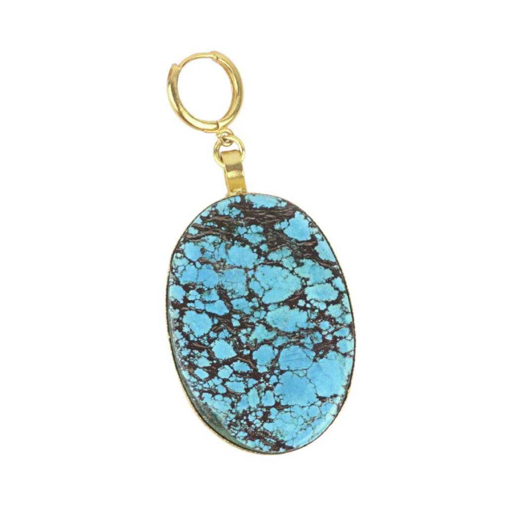 Turquoise always reminds Wendy of her birth state of Arizona so of course we had to add a Turquoise pendant to our Favourite Things Collection! Removable 45MM oval pendant fit for the boot-wearing cowgirl princess in your life! An easy update to one of our WPD gold chains. Hoop attachment provides flexibility in wearing – as it attaches to virtually any necklace.